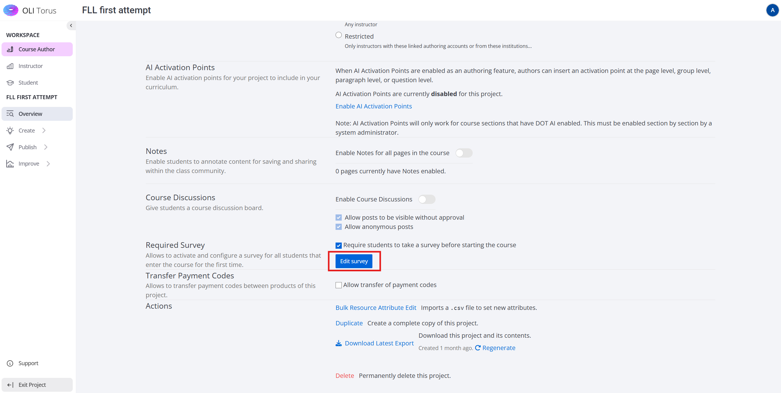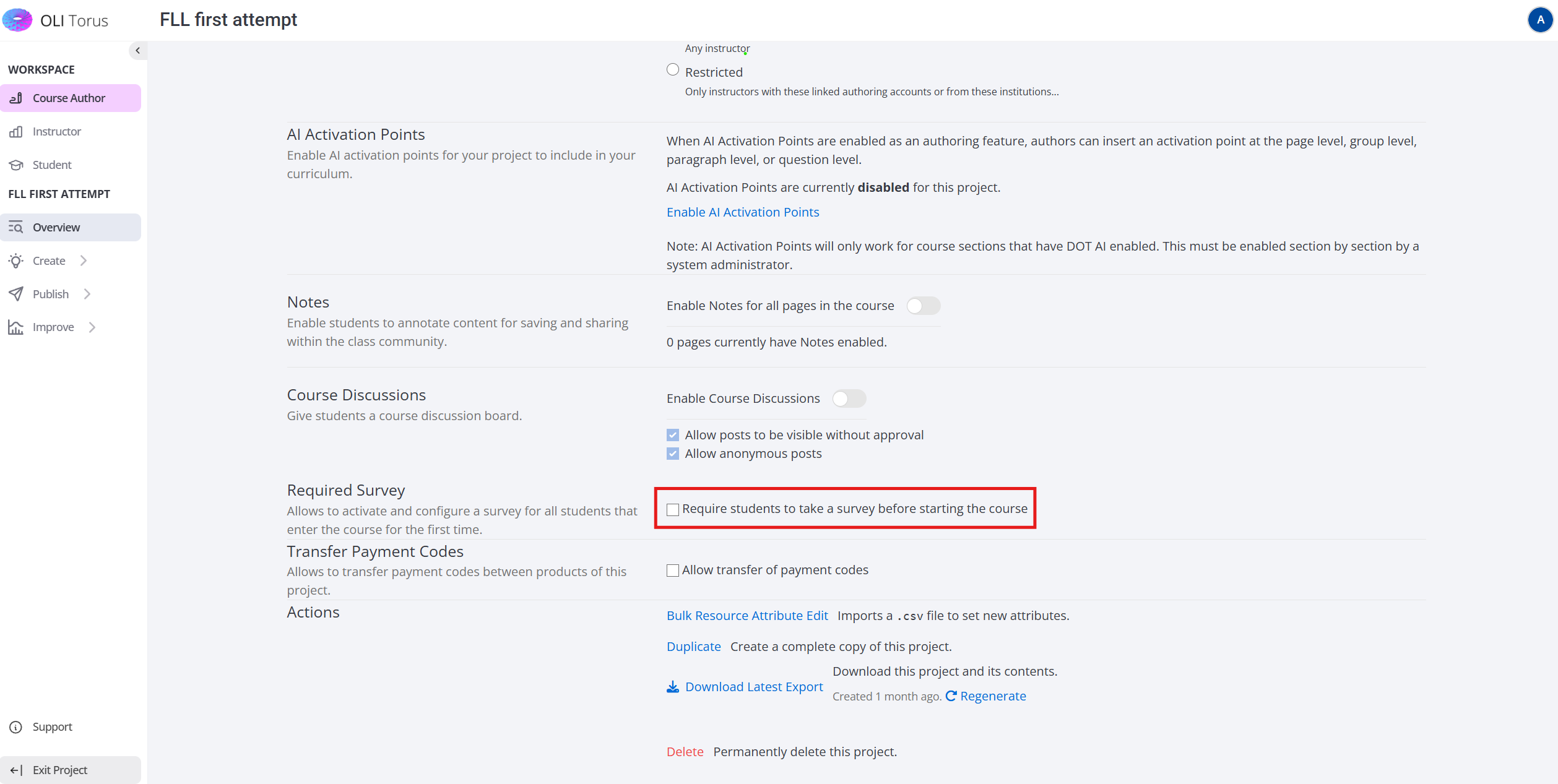 - Aktivera funktionen via ditt authoring-konto under Project Overview: