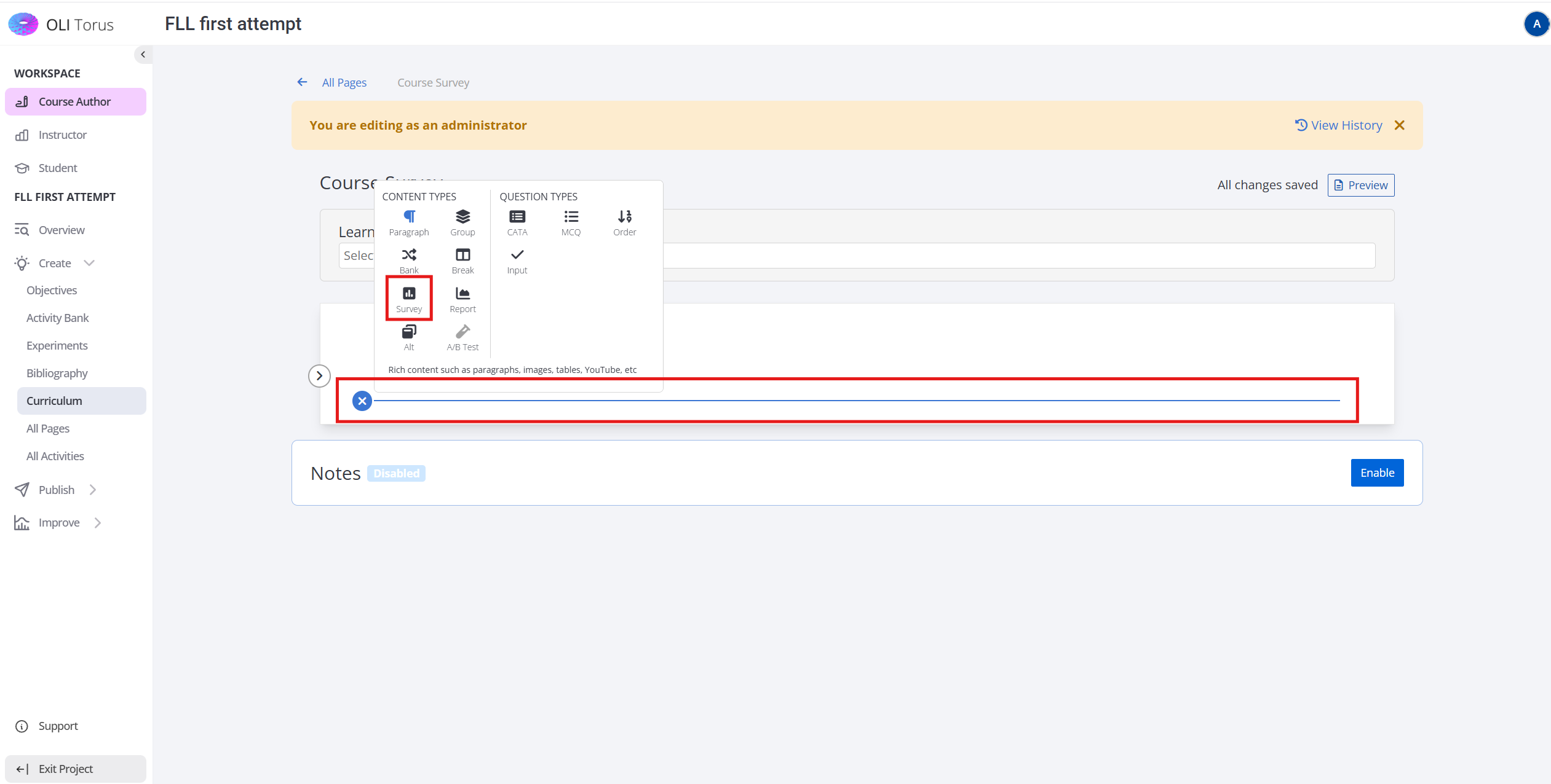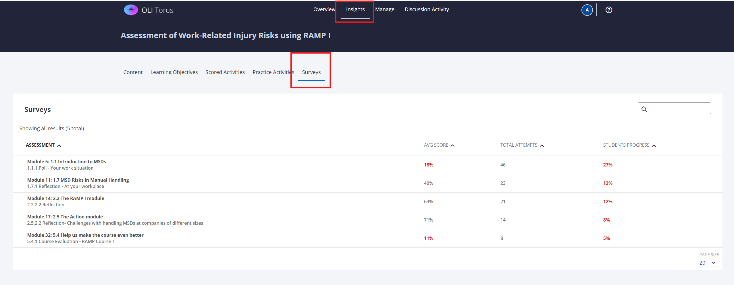 - Logga in med ditt instruktörskonto och öppna kursen. Gå till Insights → Survey:
